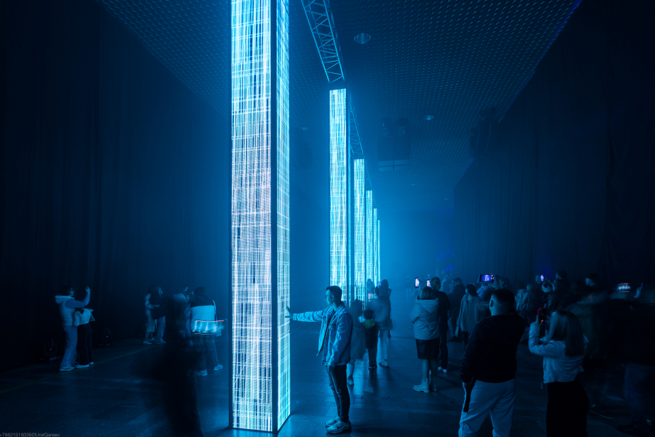 Студия Radugadesign (г. Москва) представила инсталляцию, которая погрузит в магию "семерок" вместе со световыми иллюзиями. Инсталляция "ROW" от студии TUNDRA (г. Санкт-Петербург) перенесет зрителей в мир электромагнитных волн. Ряд LED-вентиляторов, вращаясь, создаст футуристический эффект парящих голографических структур.